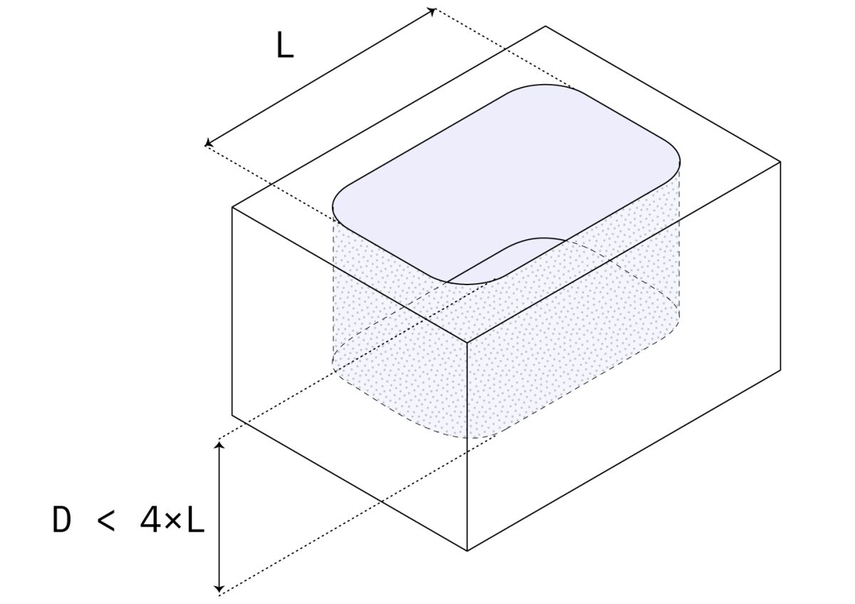 Standard: 4 times the cavity width. Minimum: 25cm or 10 times the tool diameter